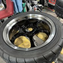 ニスモのLMX6Sというホイールをお預かりしました。こういうホイールです、1ピースブラックのもので、外周だけ部分的にダイヤモンドカット加工されているホイールです。