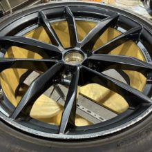 リムを残してブラックへカラーチェンジ致します。ブラック塗装、クリア塗装まで完了したのがこの状態。